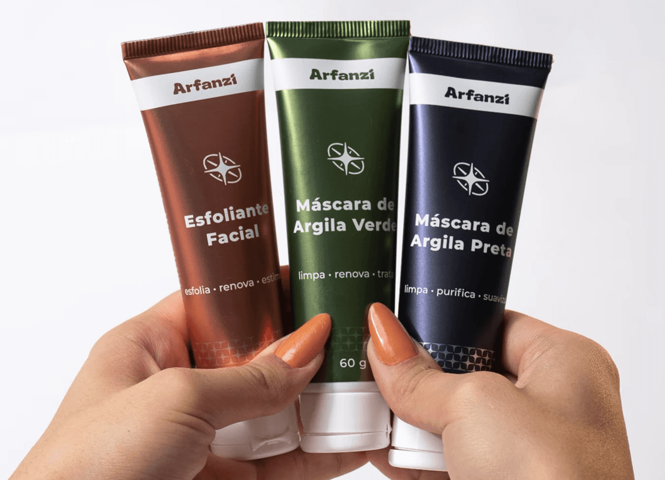 Há três anos desenvolvemos a identidade completa da Arfanzi, marca especializada em cuidados capilares e skincare. O projeto começou com a criação do logotipo, que estabeleceu a linguagem visual para todo o ecossistema da marca.